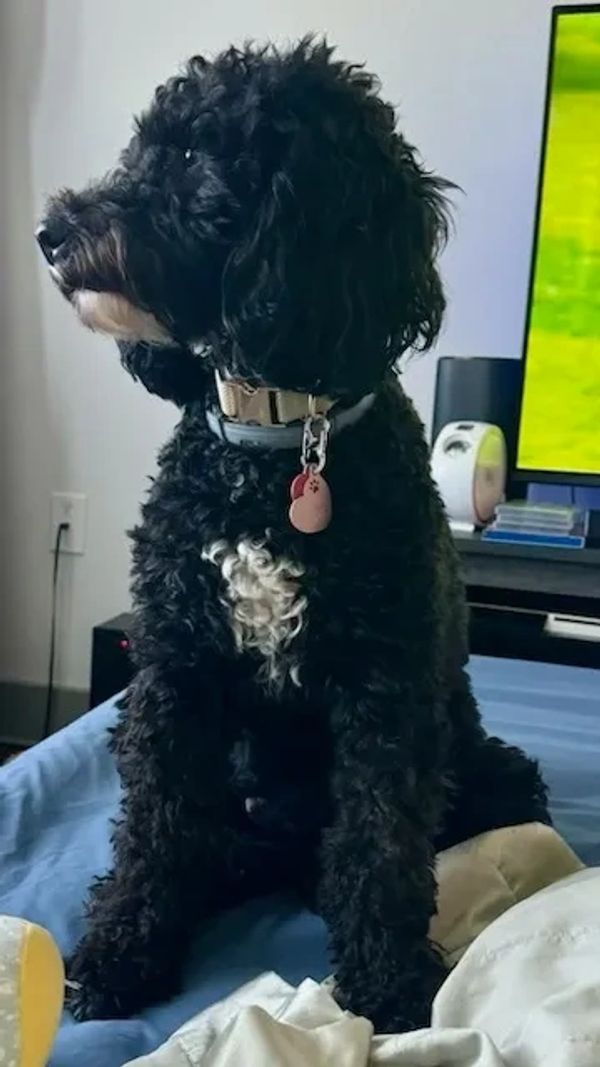 Coco is a BEAUTIFUL mini Bernedoodle, she is 28 pounds and black coat with white chest. Current Sire is Wynn 12 lbs